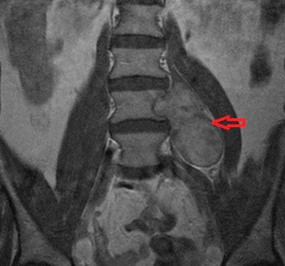 | Остеосаркома | Наиболее часто патология диагностируется у детей во время интенсивного роста костей и у взрослых до 30 лет. При остеосаркоме наблюдается поражение только одного поясничного позвонка, а метастазы обнаруживаются в головном мозге и легких, реже — в костных структурах |