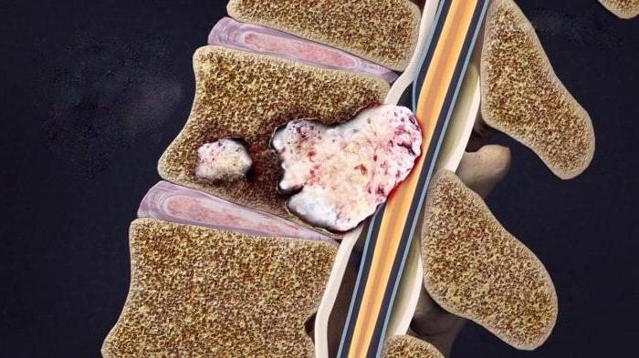 Ведущие симптомы рака позвоночника — боли в спине, тазовые расстройства, нарушения чувствительности, снижение объема движений в пораженном отделе. Патология быстро распространяется на здоровые кости, хрящи, связки, поэтому прогноз зависит от стадии ее течения. Проведение комбинированной терапии позволяет добиться устойчивой ремиссии у 70% пациентов. В лечении рака позвоночника практикуются хирургические вмешательства, химиотерапия, лучевая терапия.