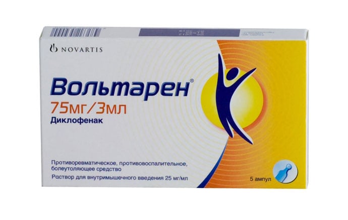 Если пациент жалуется на острые, пронизывающие боли, то ему показано внутримышечное введение Вольтарена, Ортофена.