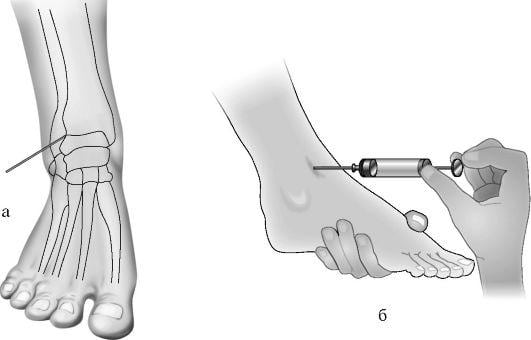 Пункцией извлекается экссудат для биохимического исследования. Биологические образцы также помещаются в питательные среды. По сформировавшимся колониям можно определить видовую принадлежность возбудителей, их чувствительность к лекарственным средствам, степень тяжести тендовагинита голеностопа.