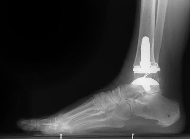 - Не происходит перемещения имплантатов. Протез не мигрирует в дистальный метаэпифиз большеберцовой кости или тело таранной кости.