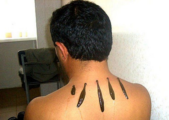 Так называется лечение медицинскими пиявками — кольчатыми червями, обитающими в пресных водоемах. В их слюне содержится огромное количество биологически активных веществ, обладающих анальгетическим, спазмолитическим, противовоспалительным действием. На область сместившихся дисков устанавливаются обычно 2-3 пиявки. Они прокусывают кожу, а образование тромбов предупреждают впрыскиванием в кровь слюны. После насыщения черви отваливаются, а травмированные участки обрабатываются антисептиками.