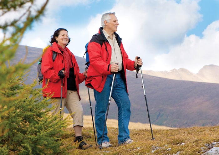Особенно полезна скандинавская ходьба с использованием специальных палок, которые несколько короче лыжных. Применяются приспособления как фиксированной длины, так и с несколькими выдвижными сегментами-коленьями. Ручки оснащены специальными ремешками для надежной фиксации и предупреждения скольжения.