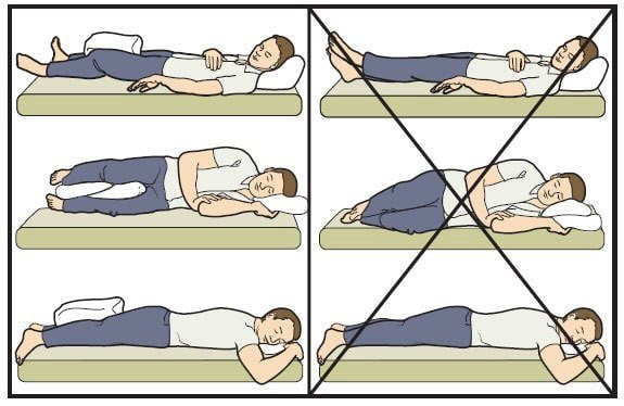 Врачи разрешают садиться через 3 дня после установки ТБС. Угол сгибания в бедре не должен превышать 90 градусов. В первые 2-3 недели нельзя находиться в положении сидя дольше 20 минут. Садиться следует плавно, медленно, без резких движений. При этом поверхность не должна быть слишком низкой или высокой. Пренебрежение этими врачебными рекомендациями может стать причиной усиления болей, а также вывихов и подвывихов.