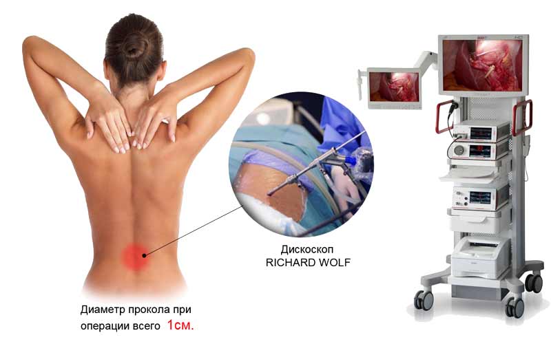Операция проводится под местной (спинальной) анестезией с использованием эндоскопического оборудования. Хирургические инструменты вводятся через проколы кожи и мягких тканей диаметром до 1,5 мм. Ход операции контролируется с помощью рентгенологического оборудования. Эндоскопические инструменты подводятся к поврежденному диску через фораминальное отверстие позвоночника.