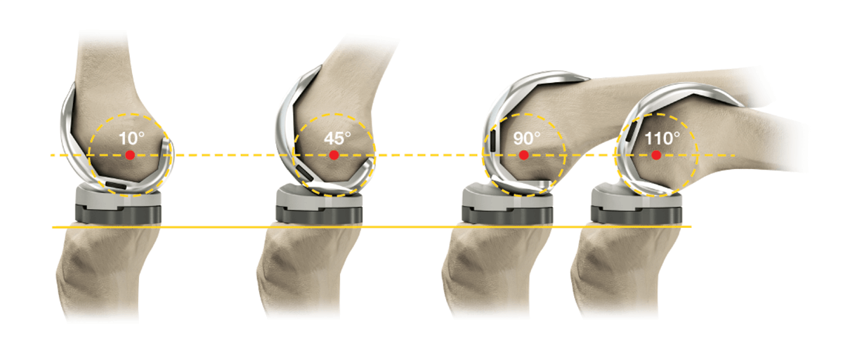 Большинство имплантов позволяют сгибаться коленному суставу, но не более чем на 110 градусов.