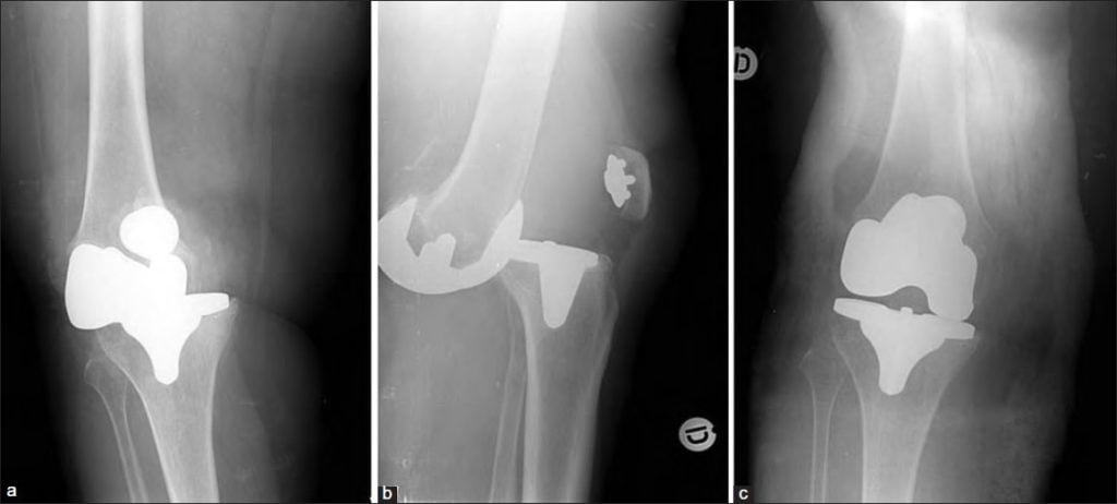 Такое может случиться, если очень торопиться. Это вывих коленного импланта.