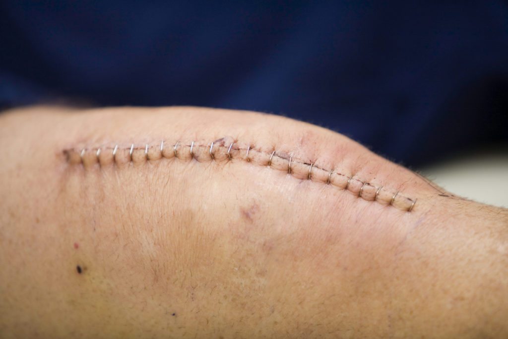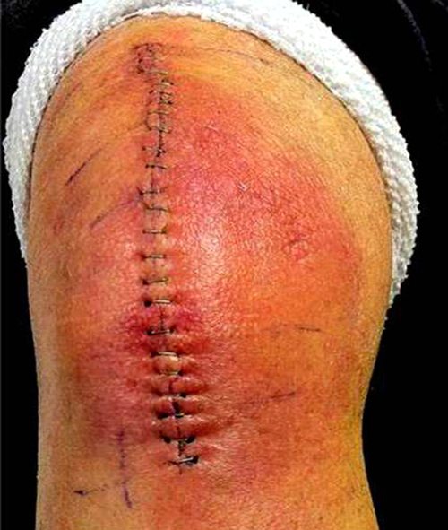 Наглядный пример того, как внешне выглядят воспалительные процессы после операции.
