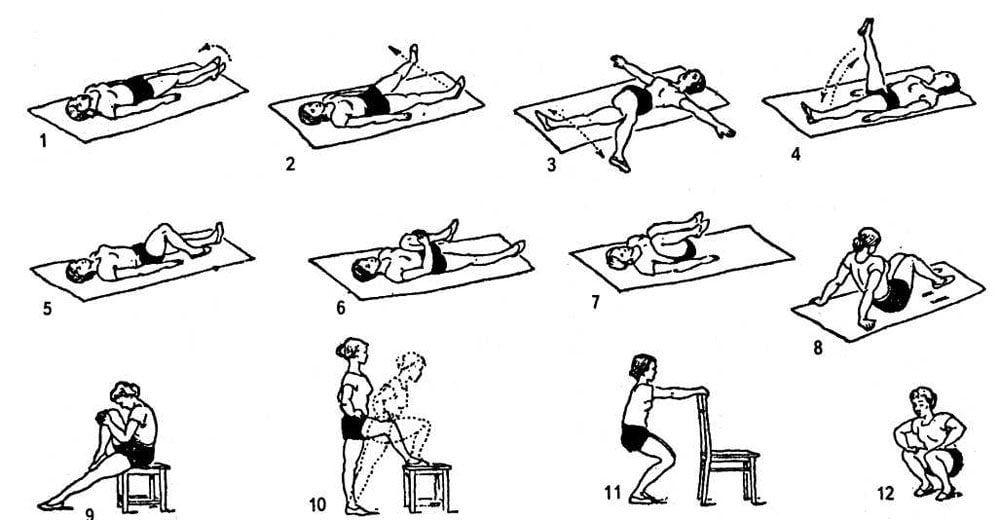 Вот эта картинка гуляет в сети, как руководство к реабилитации после замены коленного или тазобедренного сустава. Но это полнейшая глупость — тут каждое второе упражнение опасно!