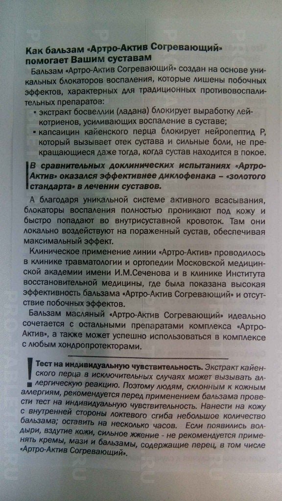 Ингредиенты в составе Артро-Актива находятся в довольно низких концентрациях. Поэтому нецелесообразно использовать капсулы, таблетки, бальзамы для устранения выраженных болей. Анальгетический эффект средств для приема внутрь проявляется через 3-4 недели курсового лечения. А бальзамы справляются только со слабыми дискомфортными ощущениями, которые возникают во время ремиссии артроза, артрита, остеохондроза.