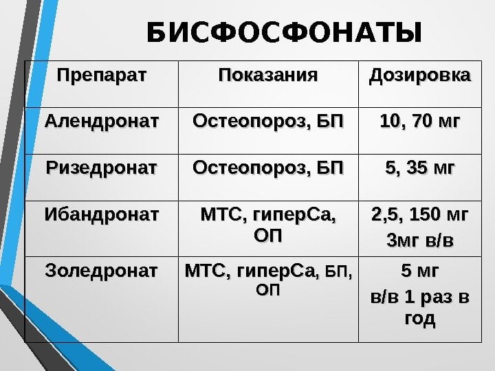 Бисфосфонаты для лечения остеопороза: классификация, полное описание препаратов
