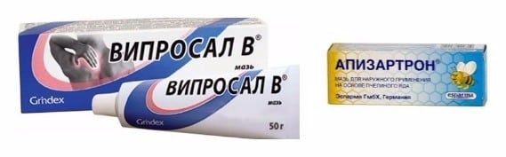 | Апизартрон | Аллилизотиоцианат, пчелиный яд, метилсалицилат | Стимулирует местный кровоток, ослабляет тоническое сокращение мускулатуры, оказывает анальгезирующее, антибактериальное, противоотечное, противовоспалительное действие |