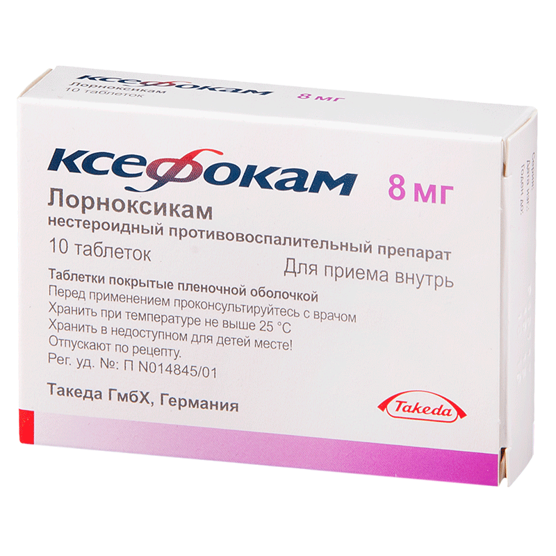 Оказывает почти такое же обезболивающее действие, как предыдущий препарат. Является неселективным ингибитором циклооксигеназы, из-за чего может вызывать побочные эффекты со стороны пищеварительной системы. Лорноксикам выпускается под торговыми названиями Ксефокам, Зорника и Ксефокам рапид. Применяется в виде таблеток, внутривенных и внутримышечных инъекций.