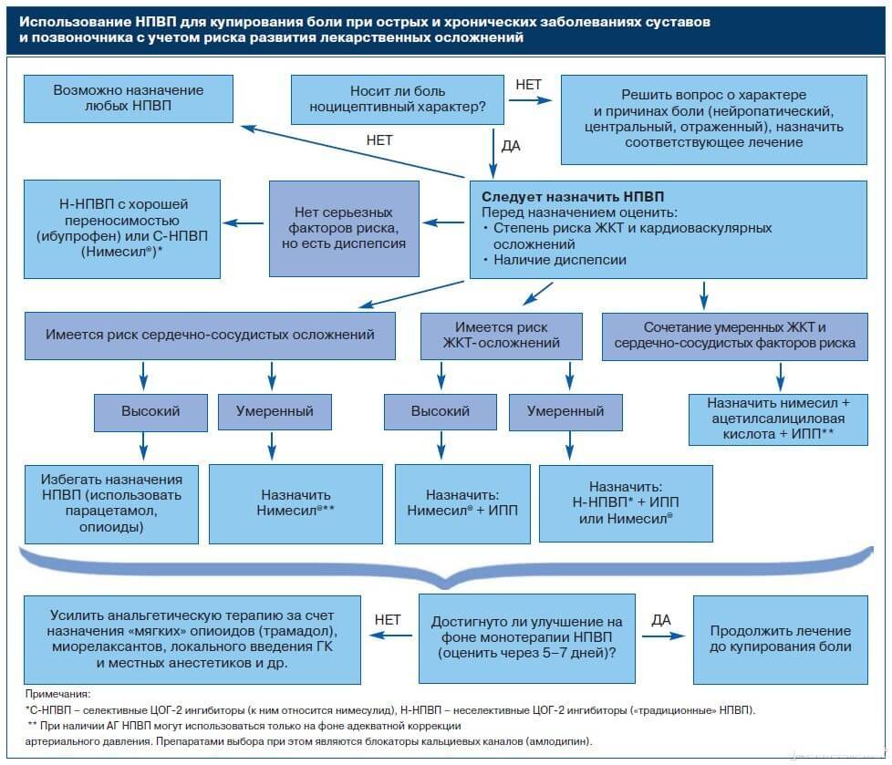 При острой боли, вызванной остеохондрозом, врачи назначают пациентам нестероидные противовоспалительные средства (НПВС), но на короткий период времени. При адекватном применении НПВС быстро купируют острый болевой синдром, предупреждая его переход в хронический.