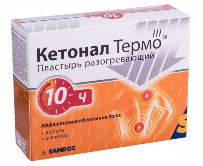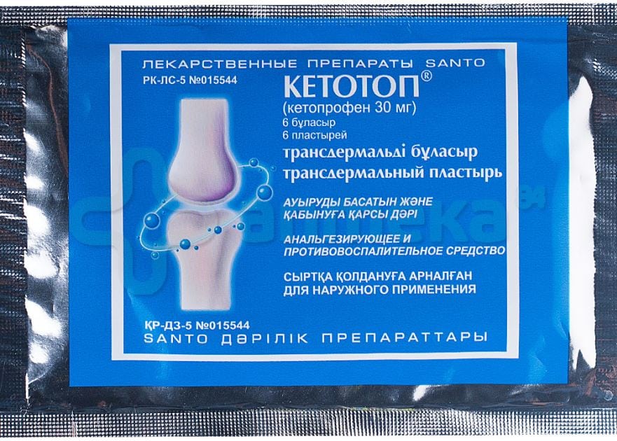 - Кетотоп с кетопрофеном. Это самое безопасное НПВС, используемое в ревматологической и ортопедической практике. Из пластыря абсорбирует около 5% активного ингредиента, оказывающего обезболивающее воздействие в течение 8-12 часов. После наклеивания средства максимальная терапевтическая концентрация кетопрофена обнаруживается через час.