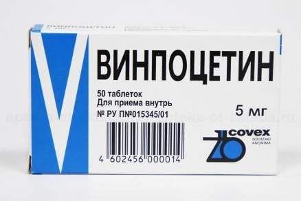 - Винпоцетин. Активный ингредиент усиливает церебральное кровообращение, устраняет дефицит питательных и биоактивных веществ. Является миотропным спазмолитиком, понижает артериальное давление, стимулирует транспорт кислорода, уменьшая тропность эритроцитов;