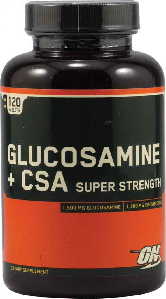 - Glucosamine + CSA Super Strength. Содержит высокую концентрацию сульфата хондроитина (1 г) и сульфата глюкозамина (0,8 г) в одной капсуле. Восстанавливает хрящевые ткани, стимулирует образование синовия, предупреждает мышечную утомляемость, способствует формированию соединительнотканных структур. Оптимальный режим дозирования — принимать 2 капсулы в сутки в течение 3 месяцев;