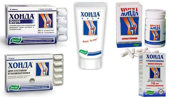Хонда для суставов выпускается отечественным производителем — фармацевтической фабрикой Эвалар. Биологически активные добавки представлены в аптечном ассортименте таблетками, капсулами, кремом для локального нанесения и порошком для приготовления напитка. Вторичной упаковкой всех лекарственных средств является картонная коробка с вложенной внутрь инструкцией по применению. Крем расфасован в пластиковые тубы, порошок — в вощеные саше, капсулы и таблетки — в блистеры из металлизированной фольги. Несмотря на схожее терапевтическое действие, состав лекарственных форм несколько разнится:
