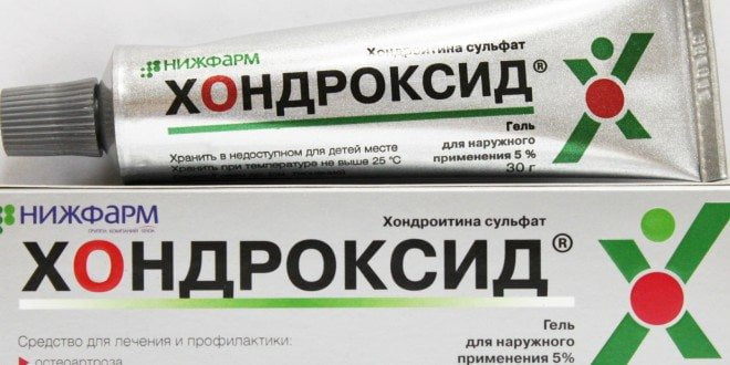 - диметилсульфоксид — фибринолитик и анальгетик, обеспечивающий пенетрацию хондроитина.