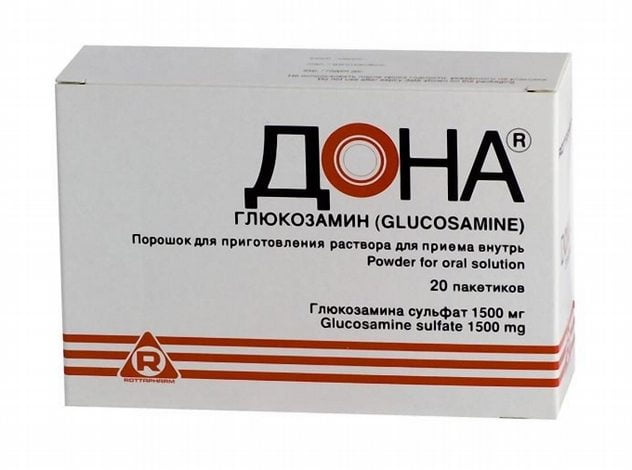 Лекарственное средство восполняет эндогенный дефицит глюкозамина, оказывает противовоспалительное, обезболивающее действие, корректирует метаболизм хрящевой ткани. В терапевтическую линейку Дона входят инъекционный раствор, таблетки, порошки для приготовления напитка. Препараты для перорального приема используются в течение 1-3 месяцев. Повторный курс — через 2 месяца.
