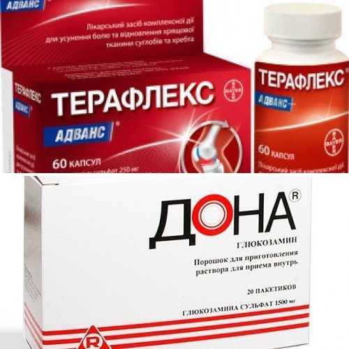 - Дона – Италия, раствор или порошок в капсулах, монопрепарат(глюкозамин).