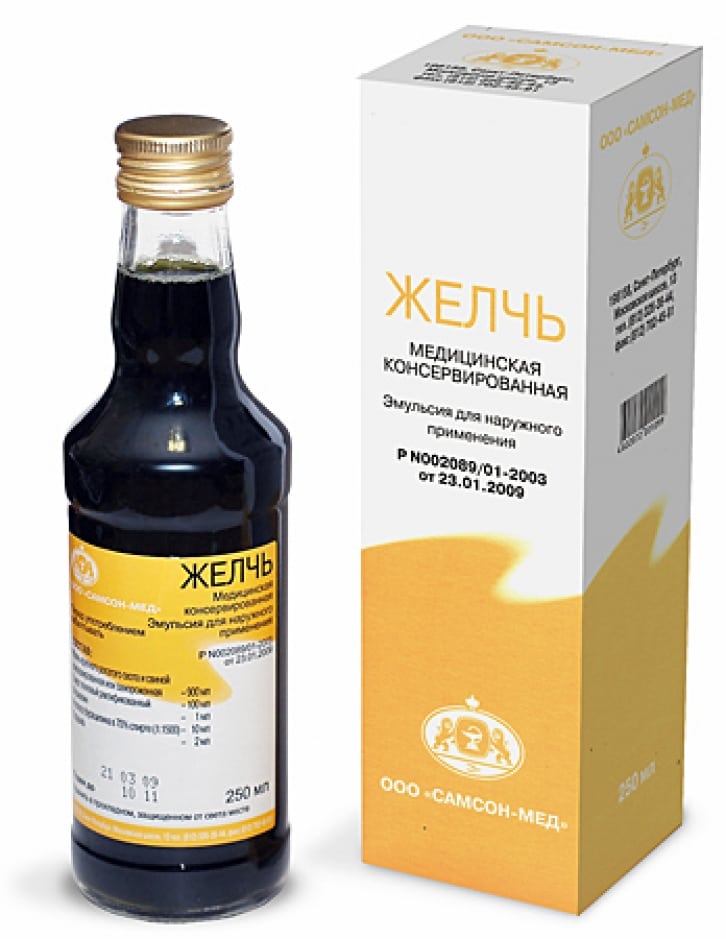 Для компрессов применяется медицинская желчь. Это маслянистая зеленоватая или коричневая жидкость, обладающая специфическим запахом. Компресс с желчью способствует снятию отека и боли, улучшает кровообращение, согревает сустав, усиливает регенерацию поврежденных тканей. Процедура проводится с концентрированным препаратом или разбавленным равным объемом воды.