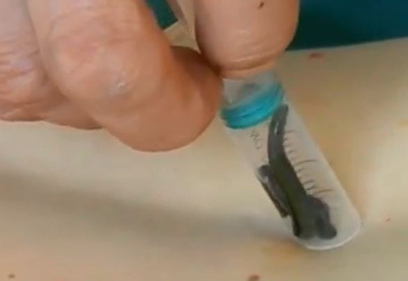 - если пиявка не отваливается сама, то к ее телу прикладывается тампон смоченный спиртом или концентрированным солевым раствором (можно просто немного присыпать червя солью);