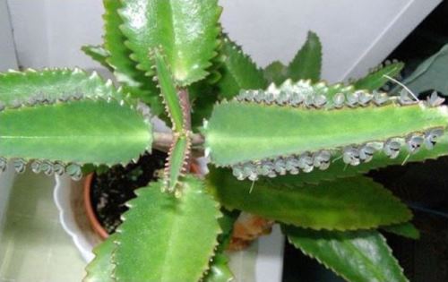 Готовят из каланхоэ и мазь, оказывающую анальгетическое и согревающее действие. Выжимают из крупного листа столовую ложку сока, смешивают с таким же объемом ланолина, подогревают в кастрюле, не допуская кипения. Добавляют чайную ложку спиртовой настойки красного стручкового перца и 100 г медицинского вазелина. Перемешивают до однородного состояния, прикладывают в емкость из темного стекла с крышкой, хранят в холодильнике. Втирают в спине при появлении слабых болезненных ощущений.