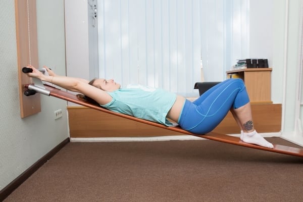 Устранить болезненную симптоматику грыжи позволит выполнение упражнений для растяжки, которые подобрал врач ЛФК. Во время занятий пациентам рекомендуется использовать доску Евминова или другие приспособления.