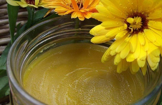 - мазь из календулы и прополиса. Она отлично снимает воспаление, а также способствует рассасыванию кисты Беккера. Лечение можно проводить в домашних условиях. Для приготовления лекарства следует ложку цветков календулы хорошенько истолочь и залить топленым жиром гуся. В подогретую смесь следует добавить прополис. Размешиваются компоненты до тех пор, пока прополис полностью не растворится. Остывшую мазь нужно нанести на кисту Беккера и весь коленный сустав, хорошо растереть, обмотать теплым платком на несколько часов.