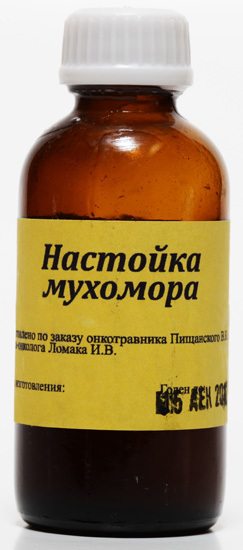 Один из древнейших рецептов, признанный весьма действенным. Грибы собираются молодые, для настойки годятся только шляпки. Полулитровая банка заполняется ими (в измельченном виде) на треть и заливается водкой доверху. Емкость плотно укупоривается и убирается в темноту на две недели. Использовать только после процеживания; по окончании процедуры сустав утепляется. Боль уходит в течение 30-40 минут.