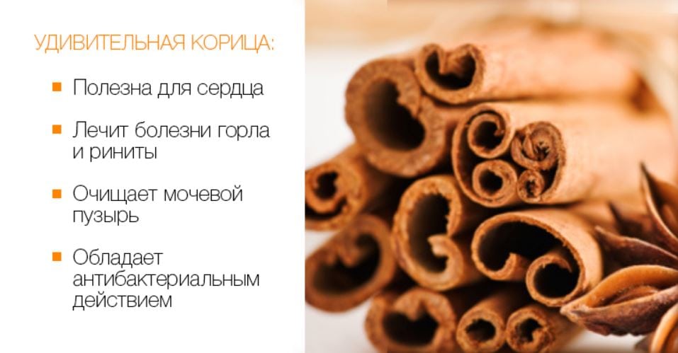Химический состав корицы, растения из обширного семейства Лавровые, представлен эвгенолом, циннамальдегидом, бета-кариофилленом, линалоолом, филландреном, метилхавиколом. Эти вещества содержатся в коричном желто-золотистом эфирном масле с резким пряным ароматом. Но самыми мощными лечебными свойствами обладает циннамаль — альдегид коричной кислоты.