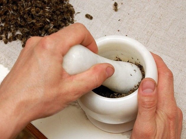 Средства для лечения суставов готовят из цельного или измельченного подмора. В последнем случае погибших пчел подсушивают, удаляют подвергшихся гниению и растирают до состояния порошка. Следует учитывать, что срок годности подмора — 12 месяцев. По его истечению концентрация биоактивных веществ постепенно снижается.
