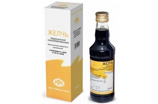 - с медицинской желчью, обладающей мощной противовоспалительной и стимулирующей регенерацию активностью. Используется в чистом виде или разведенном водой (1:2).