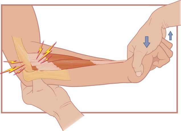 - эпикондилит. Характерным симптомом патологии становится сильная боль при попытке согнуть или разогнуть кисть. Методы лечения эпикондилита, или «болезни теннисиста», в локтевом суставе зависят от его разновидности. Для латеральной патологии характерно воспаление сухожилий, крепящихся к костному основанию, и сохранность функциональной активности локтя. При внутреннем эпикондилите объем движений в сочленении может быть несколько ограничен. Заболевание сопровождает воспалительный процесс в сухожилиях, ответственных за сгибание. Боль иррадиирует в локтевой сустав и предплечье.