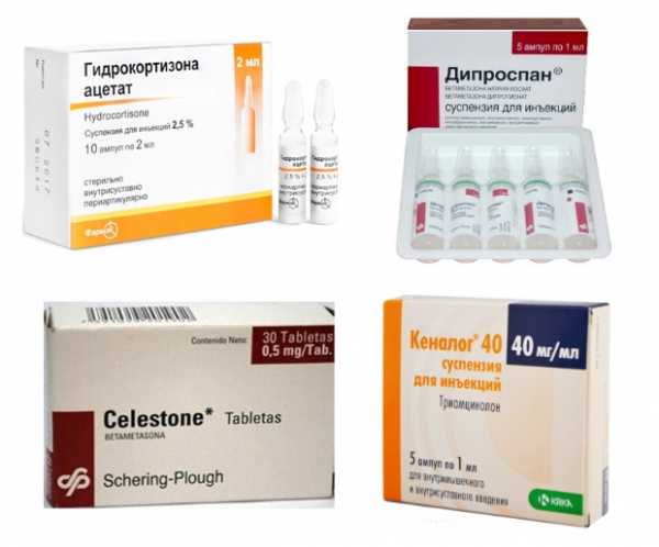 - глюкокортикостероиды — Целестон, Дипроспан, Гидрокортизон, Флостерон, Кеналог;