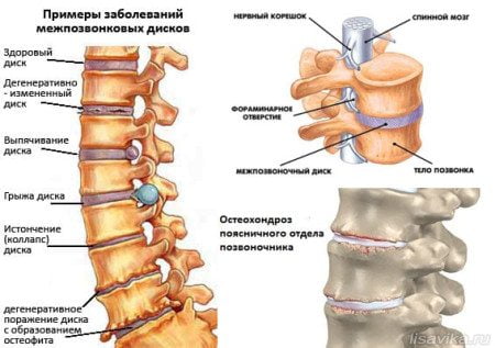 Межпозвоночный диск здорового человека способен выдерживать значительные нагрузки. Его разрыв произойдет под воздействием силы сдавливания, превышающей 0,5 т. В то же время диск, пораженный остеохондрозом, разорвется уже при силе сдавливания равной 0,2 т. Под влиянием внешних или внутренних негативных факторов в межпозвоночные диски поступает недостаточное количество питательных и биологически активных веществ. Возникший дефицит становится причиной уплощения и размягчения костных тканей, появления в фиброзных кольцах радиальных трещин. Расстояние между рядом расположенными позвонками уменьшается, они начинают смещаться по отношению друг к другу.