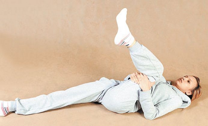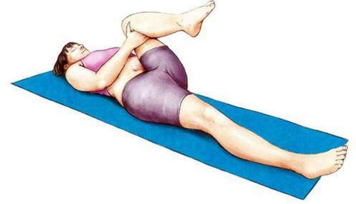 - лечь на бок, поочередно сгибать колени и стараться подтянуть их к животу. Повторить упражнение, перевернувшись на другой бок;