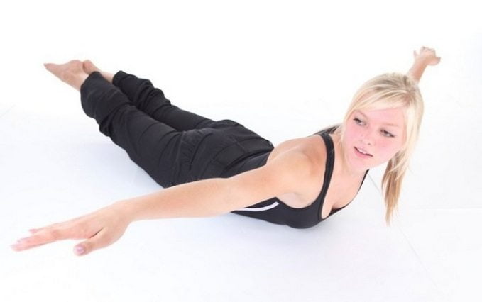 - опереться локтями на поверхность коврика, прогнуться, немного запрокидывая голову. Вернуться в исходную позицию, отдохнуть 2-3 минуты, стараясь максимально расслабить мышцы;