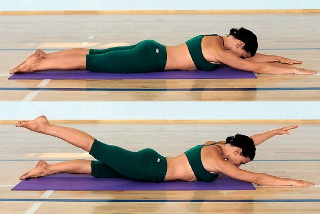На завершающем этапе отрывать от поверхности пола сразу руки и ноги, при этом стараться как можно лучше прогнуться.