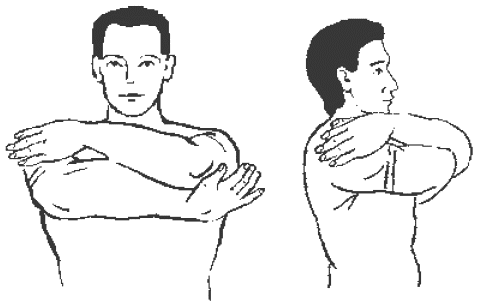 - сесть на стул, а лучше на табурет, обхватить себя руками в области груди, как бы обнимая. Стараться дальше заводить руки за спину;