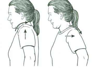 - в положении сидя с прямой спиной глубоко вдыхать, прогибаясь назад, стараясь как можно ближе свести лопатки. Задержаться в этом положении на 5 секунд, при выдохе вернуться в исходную позицию;
