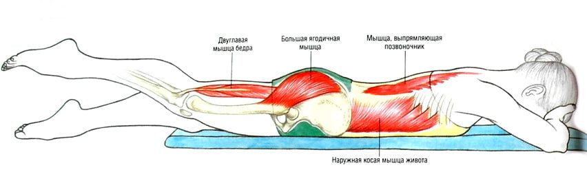 - правую ногу сгибаем под углом 45º и выполняем движение вверх с удержанием её на весу от 30 секунд до одной минуты. Особенность данного упражнения заключается в статическом положении прижатых тазовых косточек к поверхности пола;
