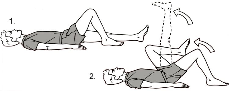 - одну ногу согнуть в колене, а другую держать прямой. Медленно поднимаем выпрямленную ногу вверх с задержкой в несколько секунд, затем опускаем её до полного расслабления. Такие же движения выполняются другой ногой;