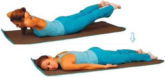 | Лежа на животе с вытянутыми вперед руками | На выдохе приподнять правую руку и левую ногу, потянуться, вернуться в исходное положение. Выполнить упражнение, задействуя левую руку и правую ногу |