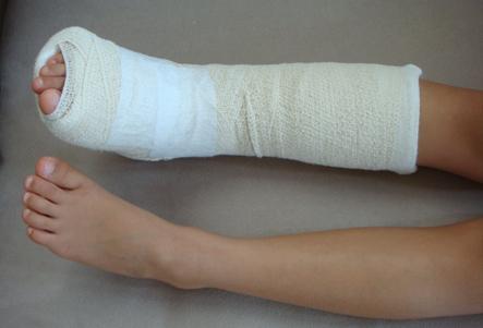 Допускается использование гипсовых лент только для изготовления шины. С помощью этого приспособления пострадавшего доставляют в травмпункт для оказания медицинской помощи.