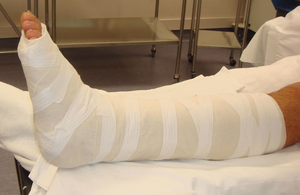 А гипсовая круговая повязка накладывается сплошным толстым слоем для длительной иммобилизации в течение нескольких недель. При классическом бинтовании сначала вокруг конечности несколько раз оборачивается перевязочный материал, а затем закрепляется гипсом. Если развивается воспалительный отек, то возникают серьезные ишемические нарушения вплоть до атрофии мягких тканей. Поэтому при травмировании врачи используют гипсовую повязку. После ее наложения пострадавший с повреждениями легкой или средней тяжести сразу выписывается для дальнейшего лечения дома. С круговой гипсовой повязкой пациент остается в больнице на сутки под присмотром медицинского персонала.