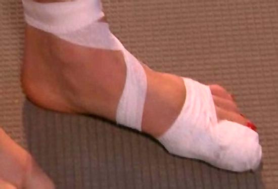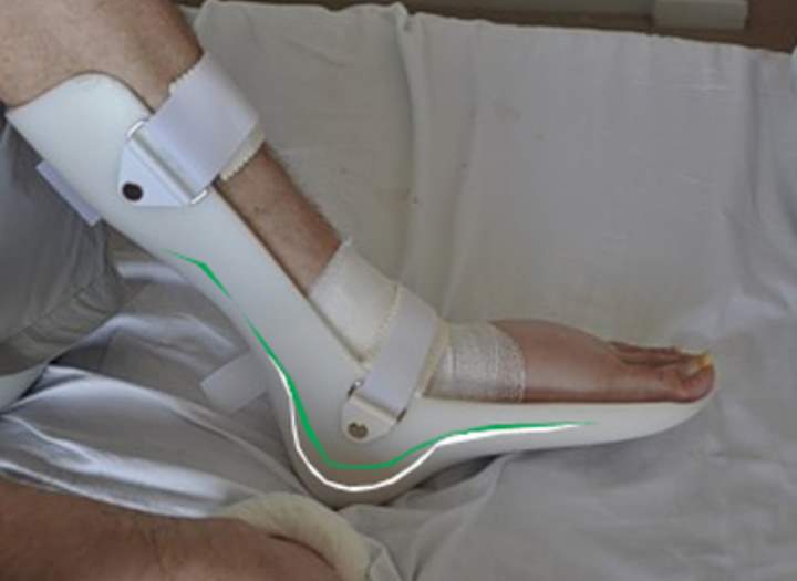 Повязка с растягивающимся эффектом используется в терапии «отвислой стопы» (односторонней свисающей стопы) — патологии, имеющей периферическое или центральное происхождение. На развитие заболевания указывают проблемы с подъемом ноги и резкое изменение походки. После наложения гипсовой лангетки стопа находится в физиологичном положении.