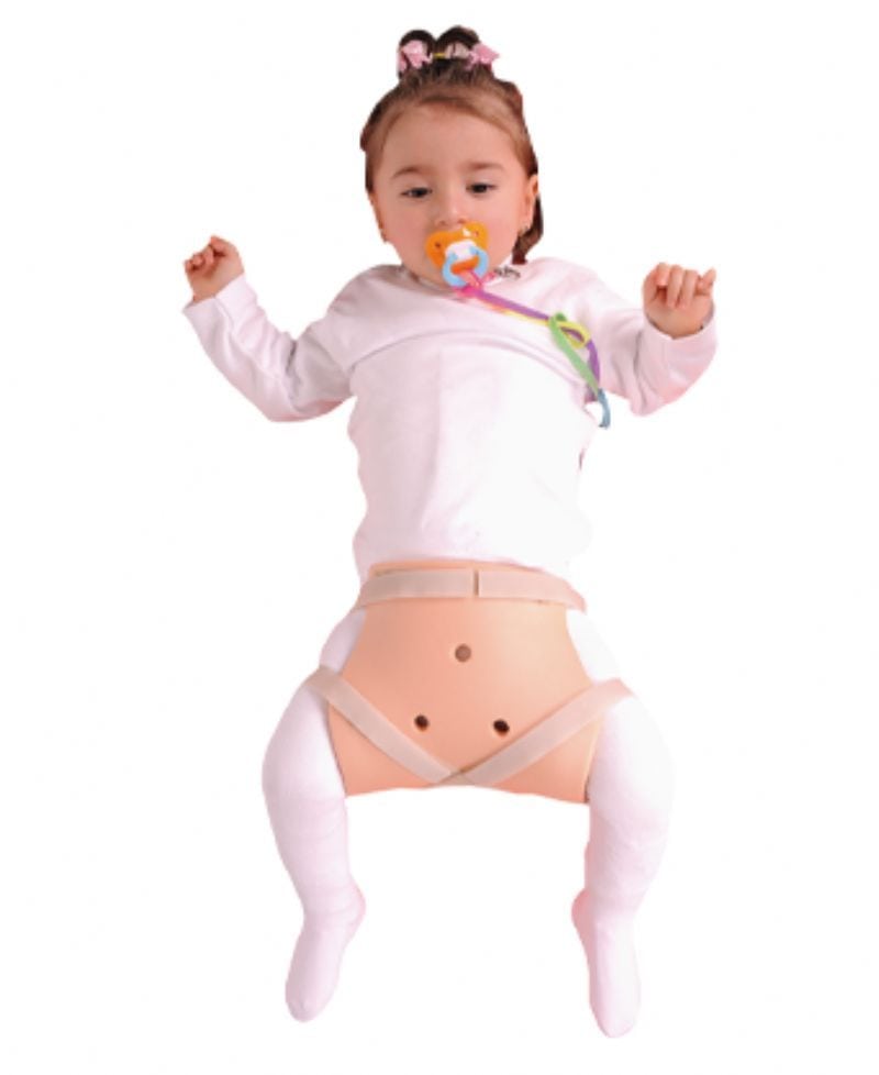 Подушка Фрейка для новорожденных сконструирована из плотного валика, располагающегося между коленями, ремешков и фиксаторов для надежного крепления приспособления. Ее ношение обеспечивает физиологичное положение ногам, при котором происходит полноценное «дозревание» тазобедренных суставов. Ножки ребенка согнуты, слегка отведены, а головки бедренных костей находятся в вертлужных впадинах.