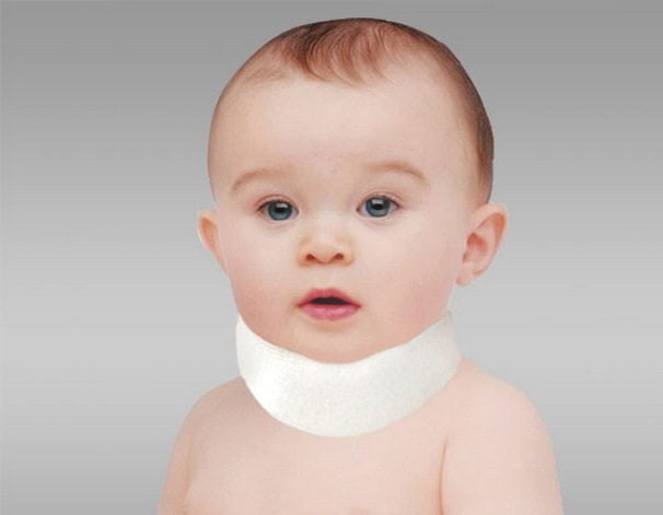 Воротник Шанца для новорожденных, стоимость которого будет зависеть от производителя, материала, размера – действенное средство, способствующее излечению патологий, в частности, кривошеи.